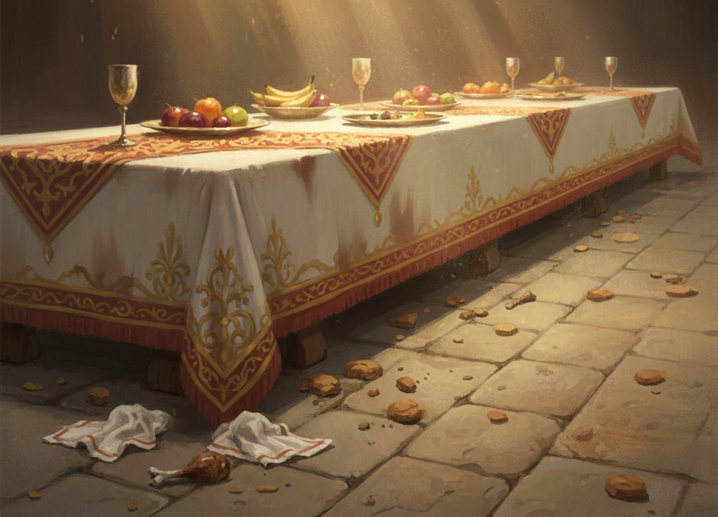 Not because there is no food above him. Not because the table is empty. But because he no longer believes the table belongs to him.